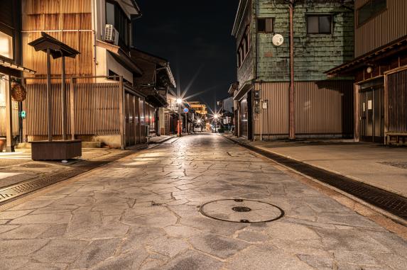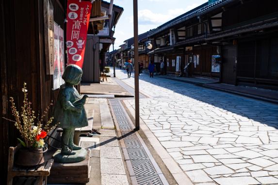 Shortly after Toshinaga Maeda, lord of the Kaga clan, founded the castle town of Takaoka, he encouraged casting production as a stimulus measure. This brought substantial prosperity to Kanaya-machi, the cradle of Takaoka’s casting. Thanks to its old latticed houses and nostalgic atmosphere, Kanaya-machi’s townscape often appears in film and TV dramas. The 500m long stone road and old latticed houses complement each other superbly and the whole area transports you back to the Meiji and Taisho periods, while still looking beautiful today.