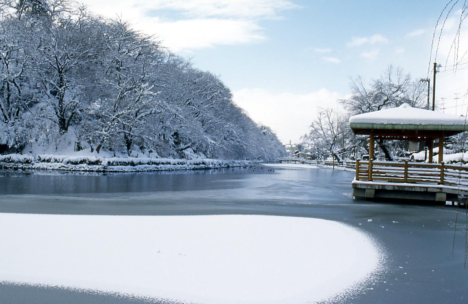 Takaoka's beautiful moated park, famous for cherry blossoms
