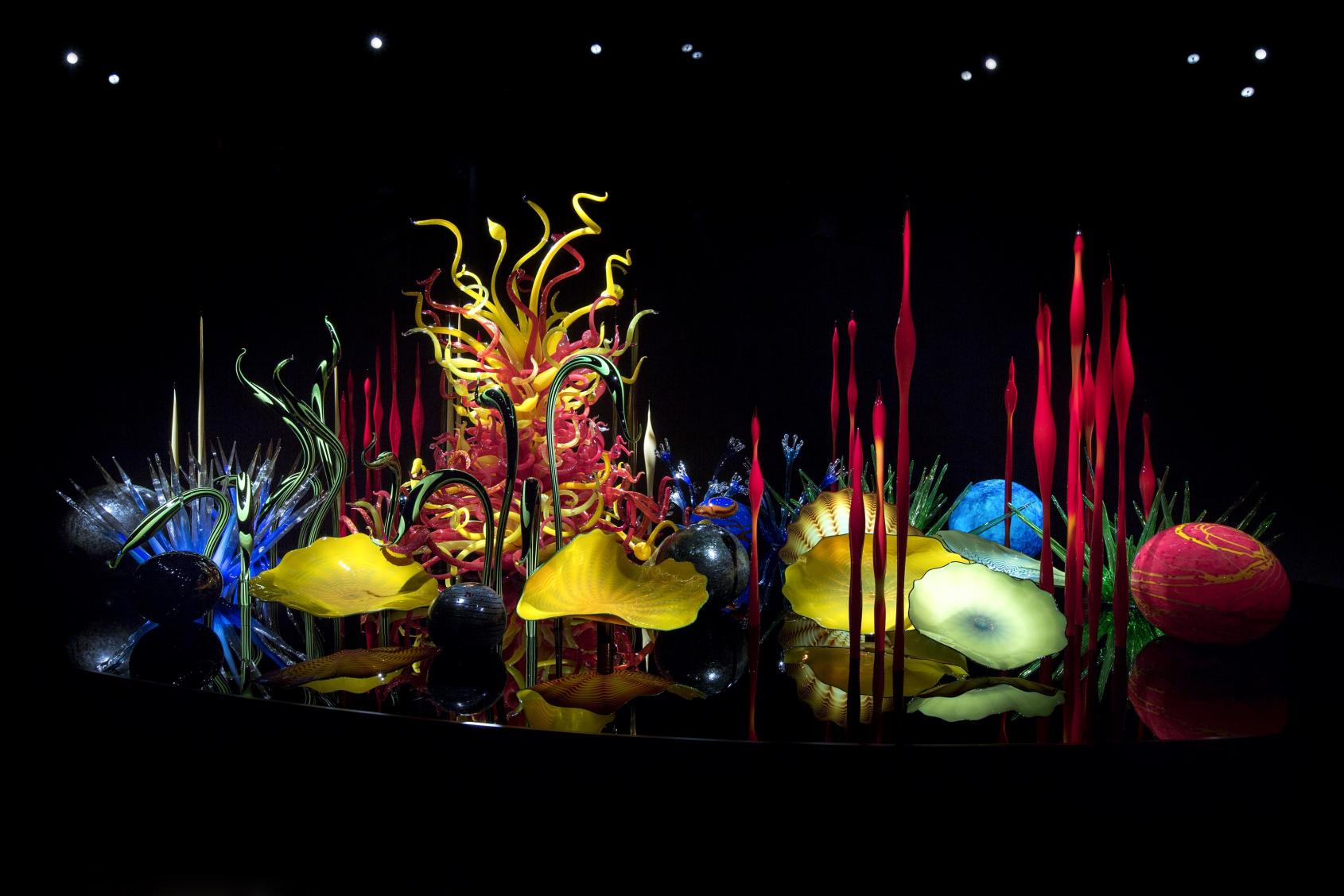 The museum’s permanent exhibition showcases stunning works from local and international artists. Highlights include five breathtaking installations by master glass artist Dale Chihuly, whose large-scale creations transform the sixth-floor Glass Art Garden into a luminous wonderland.