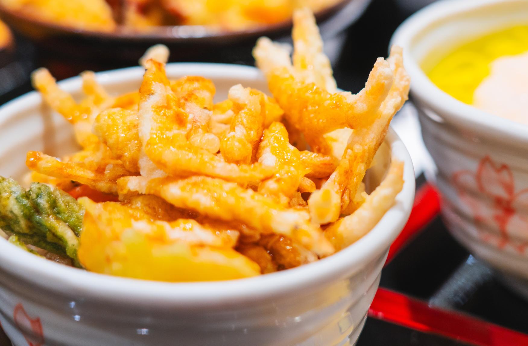 One of their signature dishes is the White Shrimp Tempura Bowl, featuring white shrimp lightly battered to preserve their natural sweetness. Each bowl is paired with freshly steamed koshi hikari rice—also from Toyama Prefecture—creating a perfect balance of flavor and texture.