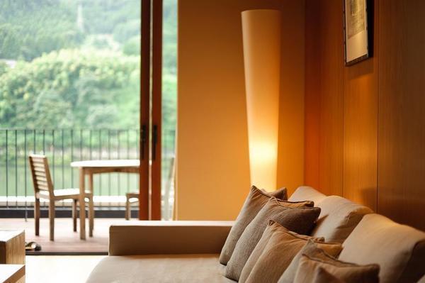 This high-end hotel combines traditional hot spring bathing with architecture and interior design that is a modern update of tea house aesthetics. A collection of contemporary Japanese art is displayed across interior common spaces, as well as outdoors along Garaku’s “Art Walk,” a promenade that runs by the picturesque Jinzu River.