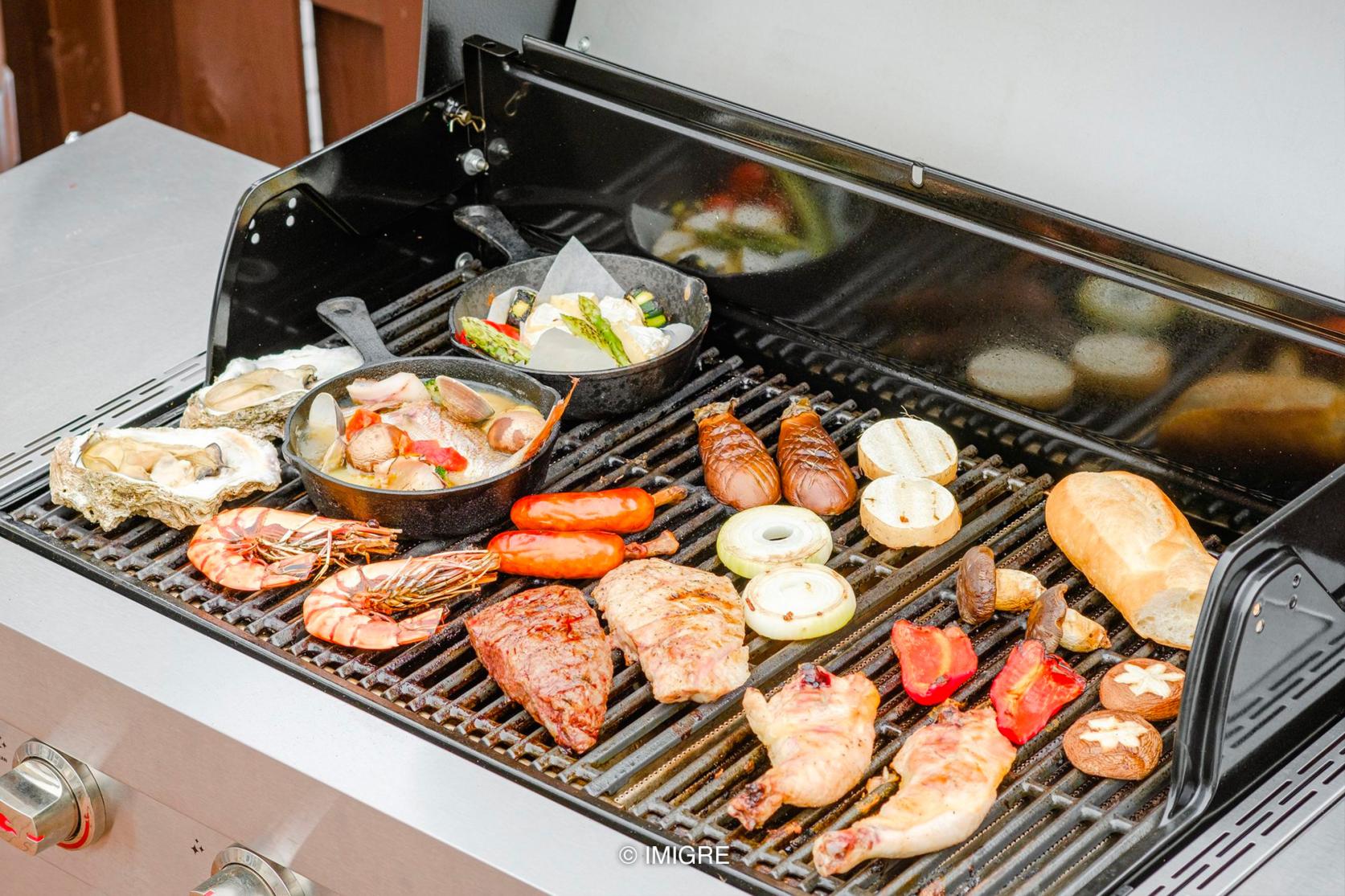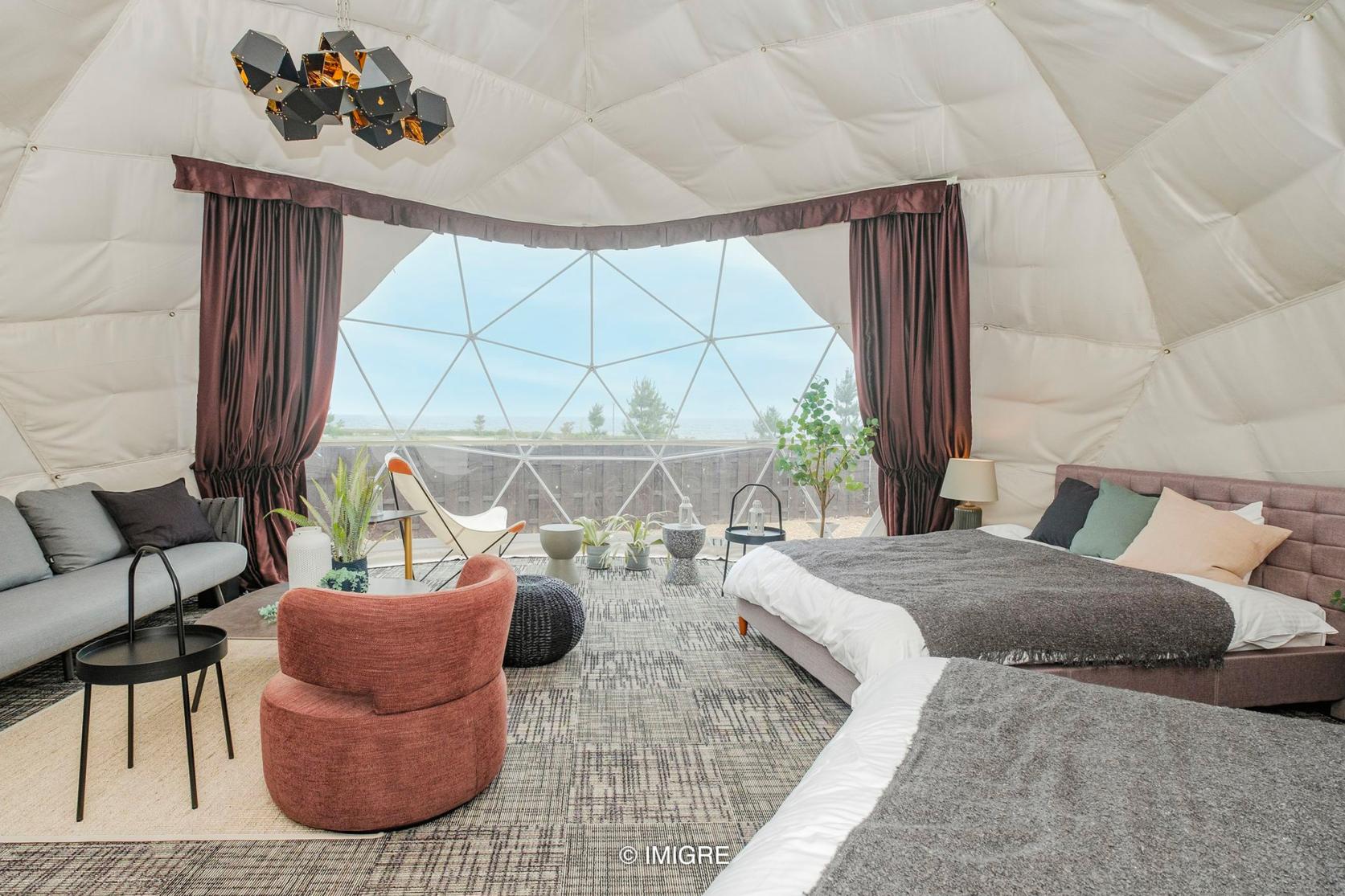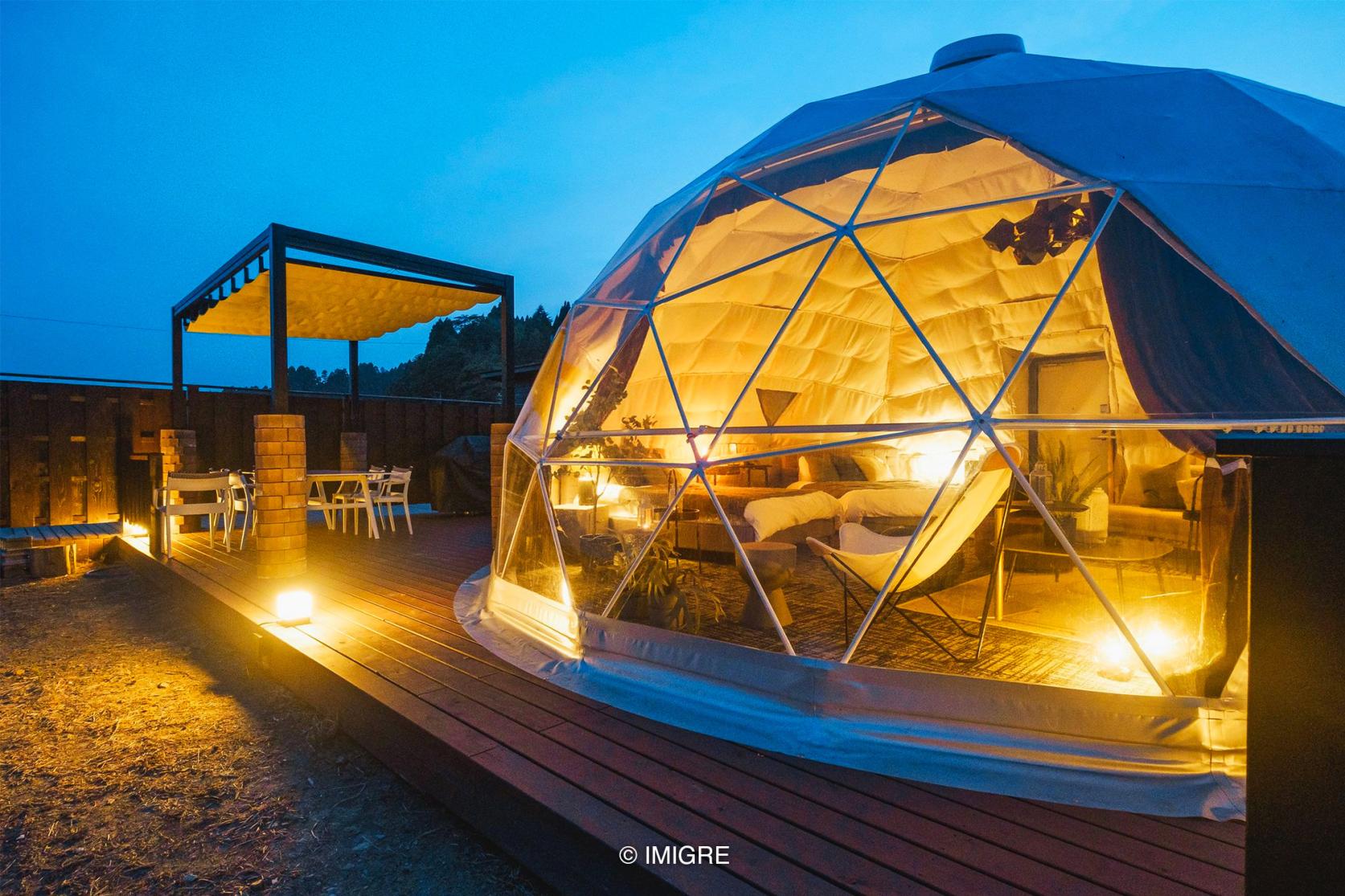 Imigre’s glamping domes are available in two varieties, each with its own distinct style. “Modern” domes feature contemporary interior design with monochromatic tones, and “Natural” domes are filled with woods and warmer, nature-derived hues. Whichever you choose, each is equipped to make this twenty-first-century camping experience a comfortable one. Besides beds, a sofa, toilet, and air conditioning/heating, the domes have barbecue facilities—including canopy-covered table and chairs—set up on their wooden decking. Ingredients for your sea-view barbecue, such as the acclaimed Himi beef, are provided by the hotel.