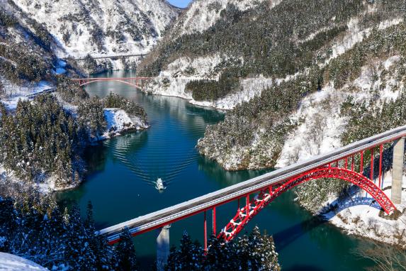 유유히 물살을 가르며 호수 위를 떠다니는 유람선을 타고 철마다 다른 옷으로 갈아입는 자연과 만난다는 것은 더없이 낭만적인 일입니다. 특히 싱그러운 봄날과 울긋불긋 단풍으로 물드는 가을 경치는 우리의 감성을 자극하기에 충분합니다. 쇼가와 협곡 사이에 위치한 고마키댐에서 오마키 온천 사이를 1시간 남짓 동안 유유히 누비며 호수 위에 비친 아름다운 산세에 몸도 마음도 맑아지는 기분을 느낄 수 있습니다. 또한 25분 동안 운항하는 스페셜 코스도 마련되어 있어 커플끼리 혹은 가족끼리 맞춤 유람선 여행을 즐길 수 있습니다.