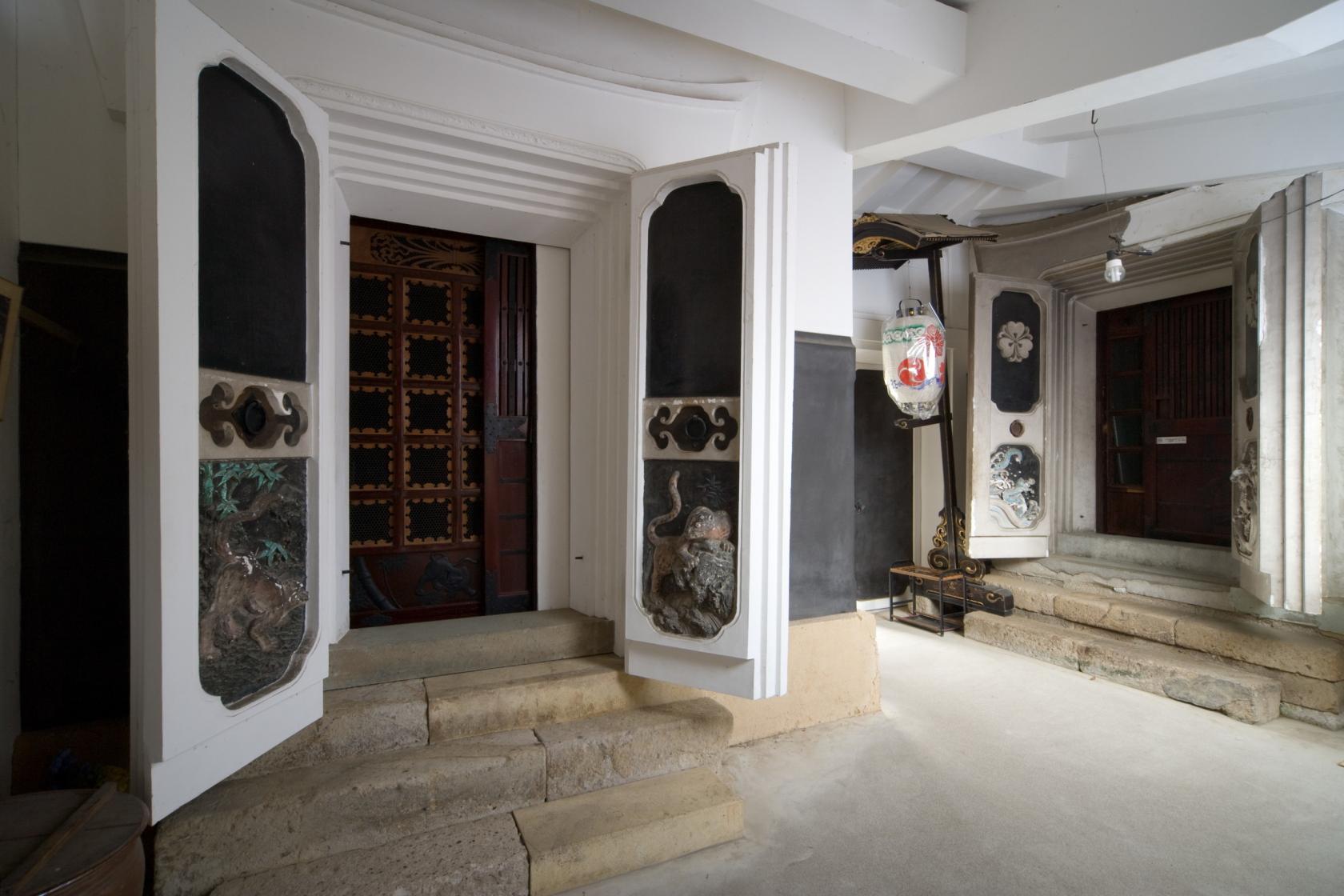 在岩濑大町街道的森家(国家指定的重要文物)是曾经活跃于日本海的北前船运输船行。您可以在馆长的绘声绘色的讲解伴随中愉快参观。因当时往返载货不空船可以双倍牟利,由此在当地将北前船称为“倍船”。也因为它来回都赢利,还被称为“拉锯式买卖”从而大发利市。对东岩濑港来说,从江户幕府末期到明治初期为其最繁荣时期,这里的森家就是1878年建成的。内部装潢极其讲究:屋久岛的杉木制成的门板窗、能登半岛产的黑松木制成的房梁、俄国产琥珀装饰的地炉、小豆岛产的整块岩石铺成的房间地面等,是集全国各地的建材建成的豪华建筑。另外还有在主屋,厨房起居兼用的连接二楼通顶的横梁木组合及土窖的装饰浮雕(象征富裕)等等都值得一看。